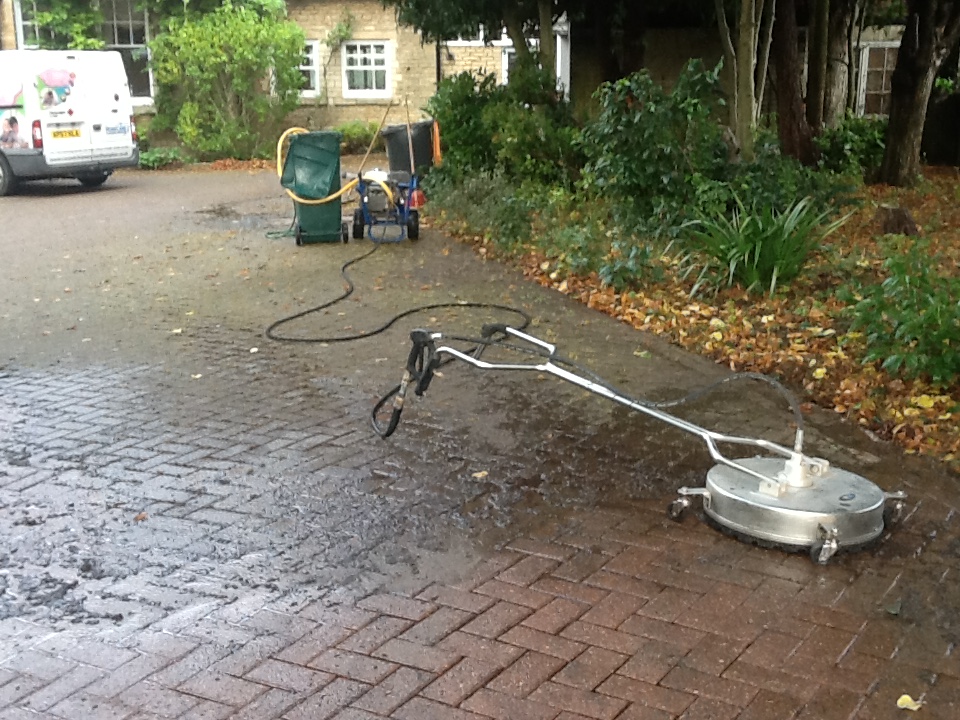The pictures show another driveway cleaning job in Rushden before we started the work and the specialist equipment we used to clean the driveway.